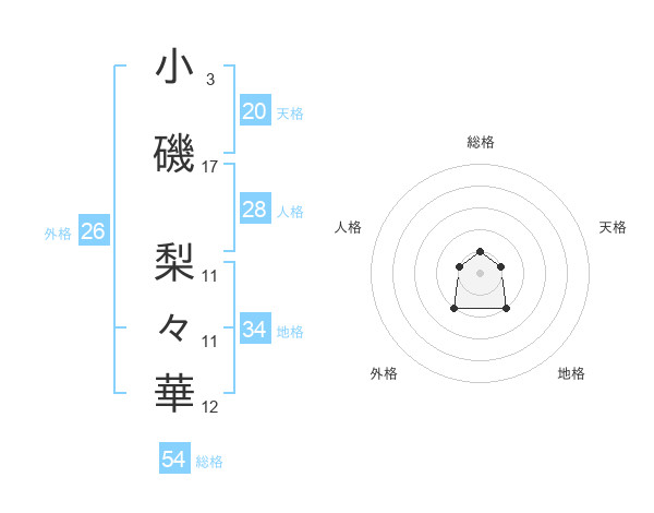 小磯 梨々華さんの総格は54画の1点!
