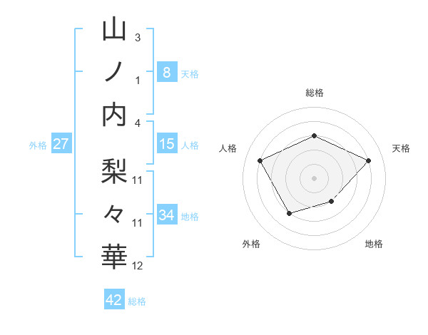 山ノ内 梨々華さんを姓名の画数から五運を鑑定