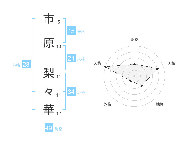 市原 梨々華さんを姓名の画数から五運を鑑定