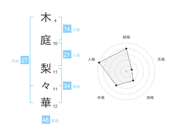 木庭 梨々華さんの総格は48画の4点!