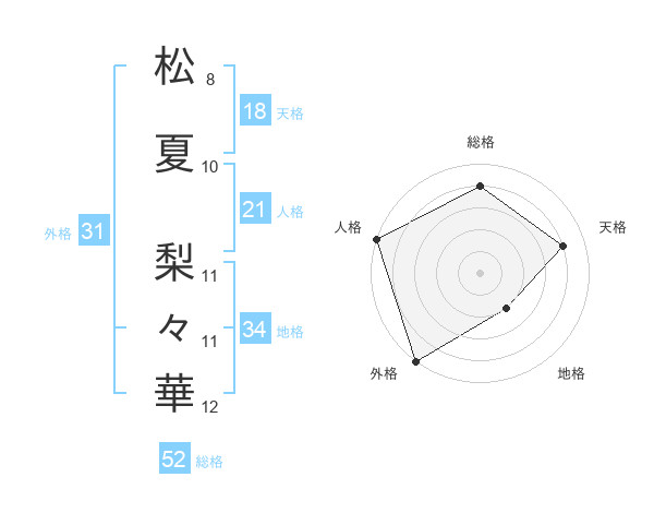 松夏 梨々華さんを姓名の画数から五運を鑑定
