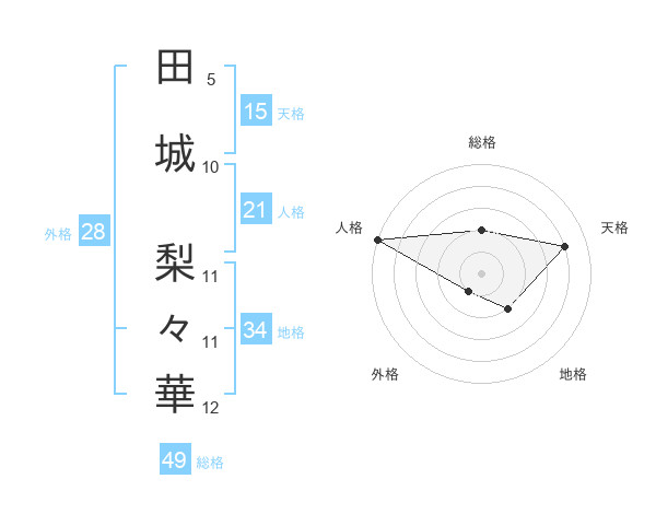 田城 梨々華さんの総格は49画の2点!