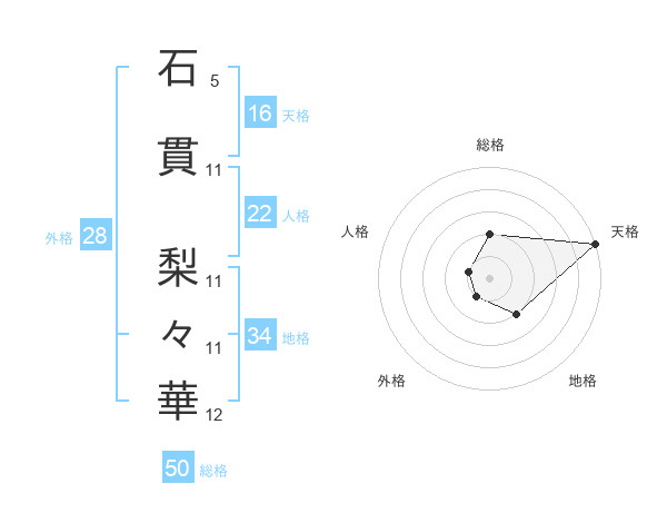 石貫 梨々華さんを姓名の画数から五運を鑑定