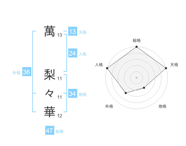 萬 梨々華さんの総格は47画の5点!