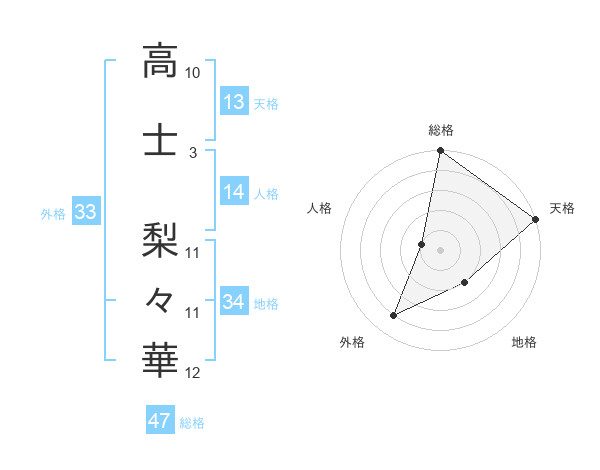 高士 梨々華さんを姓名の画数から五運を鑑定