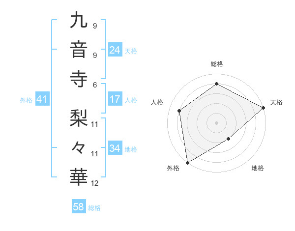 九音寺 梨々華さんの総格は58画の4点!