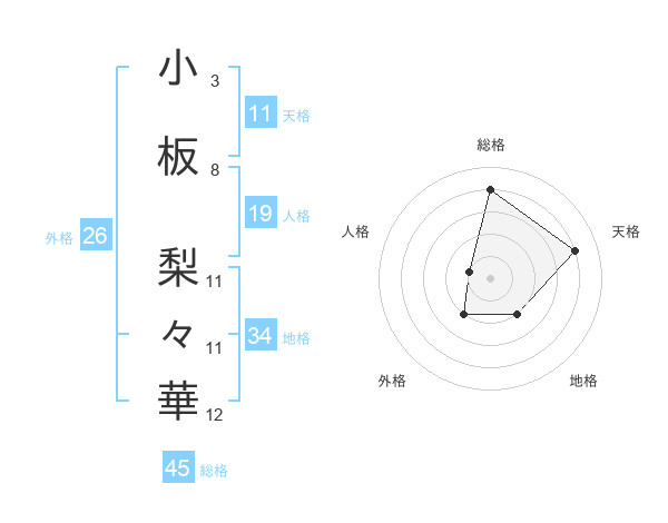 小板 梨々華さんを姓名の画数から五運を鑑定