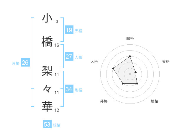 小橋 梨々華さんを姓名の画数から五運を鑑定