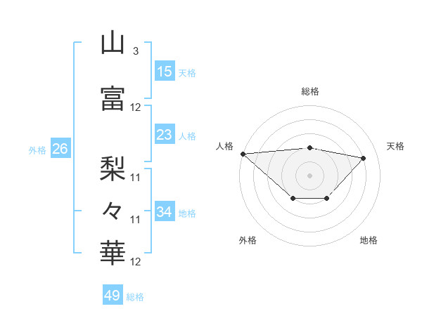山富 梨々華さんの総格は49画の2点!
