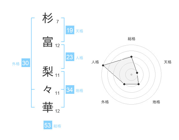 杉富 梨々華さんを姓名の画数から五運を鑑定
