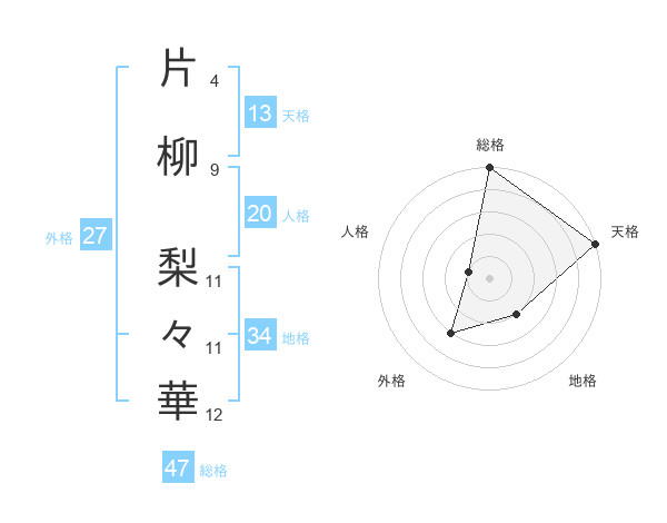 片柳 梨々華さんの総格は47画の5点!