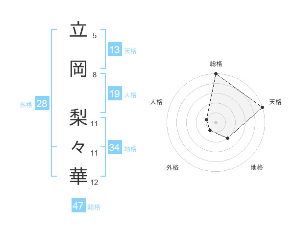 立岡 梨々華さんを姓名の画数から五運を鑑定