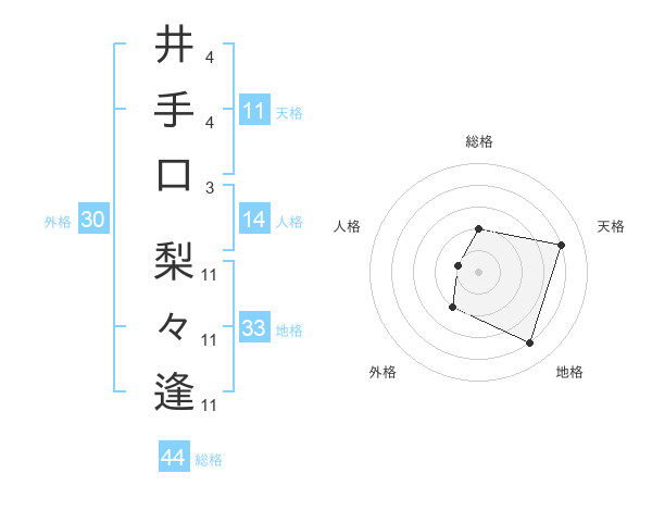 井手口 梨々逢さんを姓名の画数から五運を鑑定
