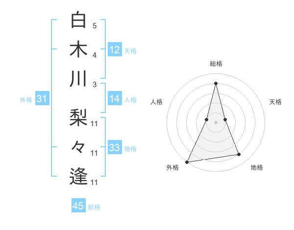 白木川 梨々逢さんの総格は45画の4点!