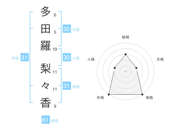 多田羅 梨々香さんを姓名の画数から五運を鑑定