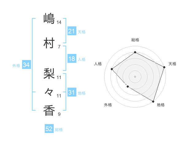 嶋村 梨々香さんを姓名の画数から五運を鑑定