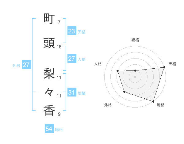 町頭 梨々香さんを姓名の画数から五運を鑑定