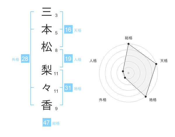 三本松 梨々香さんの総格は47画の5点!