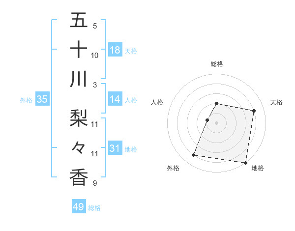 五十川 梨々香さんを姓名の画数から五運を鑑定