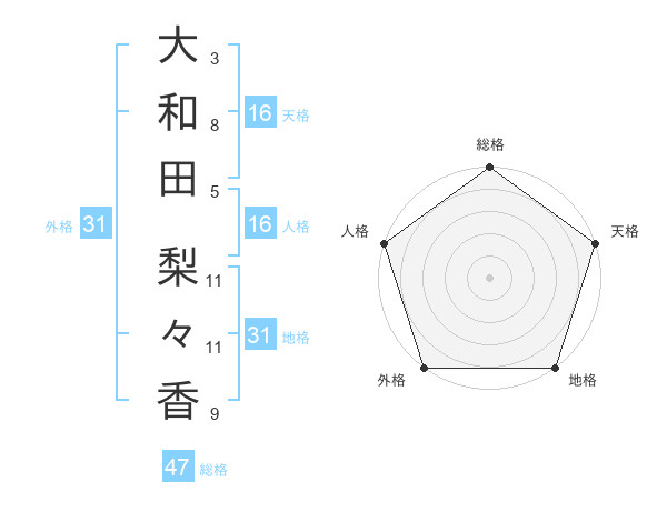 大和田 梨々香さんを姓名の画数から五運を鑑定
