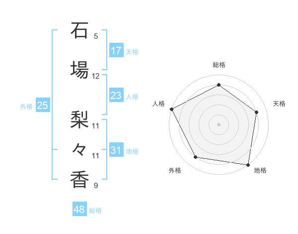 石場 梨々香さんを姓名の画数から五運を鑑定