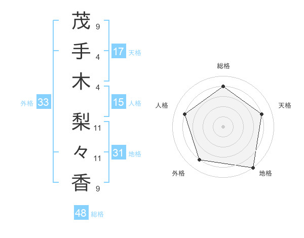 茂手木 梨々香さんの天格は17画の4点!