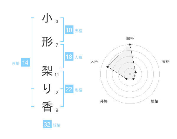 小形 梨り香さんの総格は32画の5点!