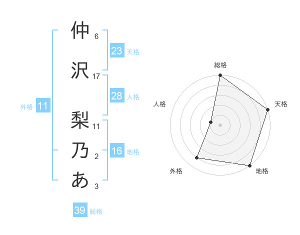 仲沢 梨乃あさんを姓名の画数から五運を鑑定