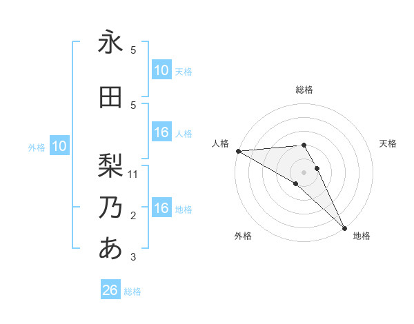 永田 梨乃あさんを姓名の画数から五運を鑑定