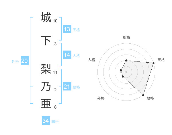 城下 梨乃亜さんを姓名の画数から五運を鑑定