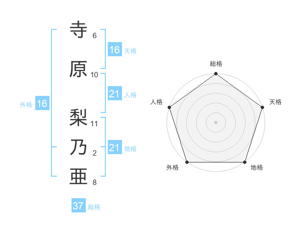 寺原 梨乃亜さんの地格は21画の5点!