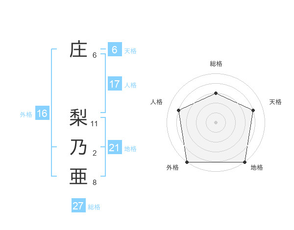 庄 梨乃亜さんを姓名の画数から五運を鑑定