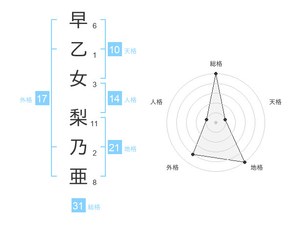 早乙女 梨乃亜さんを姓名の画数から五運を鑑定