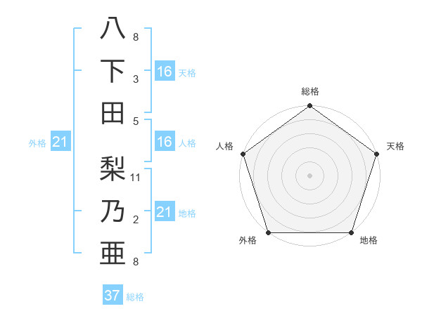 八下田 梨乃亜さんの総格は37画の5点!
