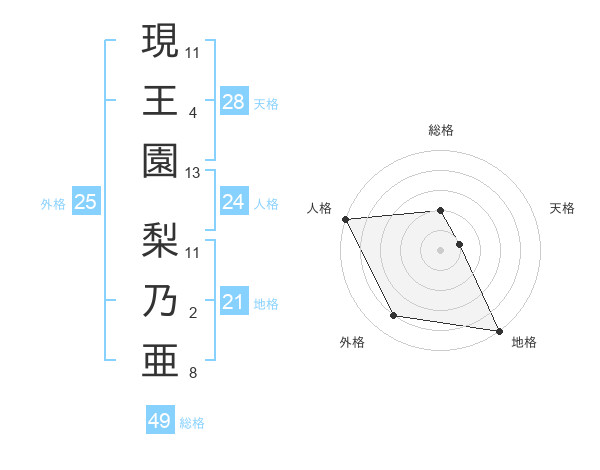 現王園 梨乃亜さんを姓名の画数から五運を鑑定