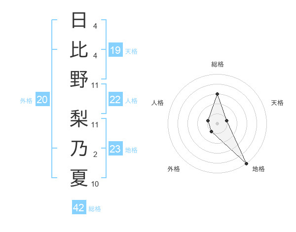 日比野 梨乃夏さんを姓名の画数から五運を鑑定