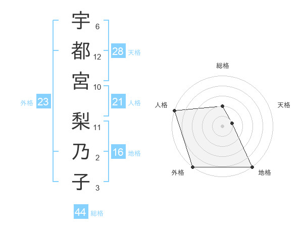 宇都宮 梨乃子さんの天格は28画の1点!