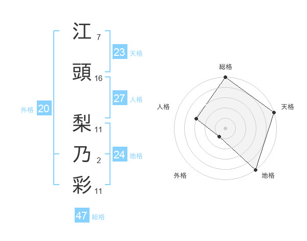 江頭 梨乃彩さんを姓名の画数から五運を鑑定