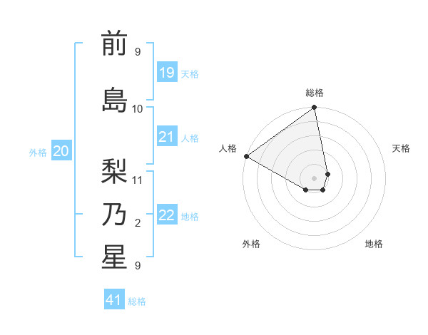 前島 梨乃星さんの総格は41画の5点!