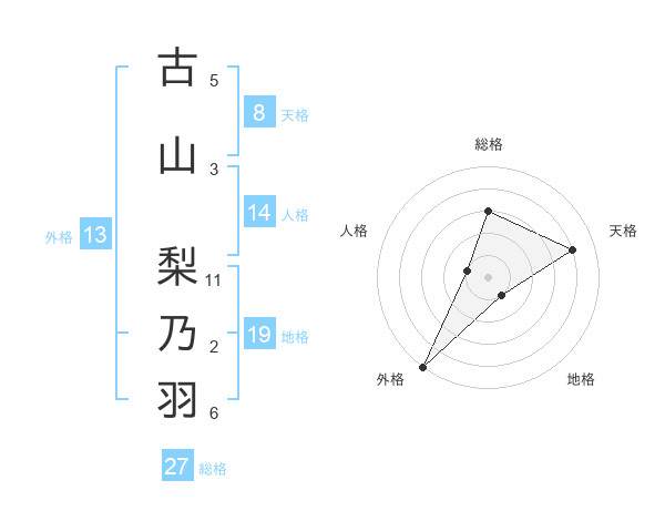 古山 梨乃羽さんを姓名の画数から五運を鑑定