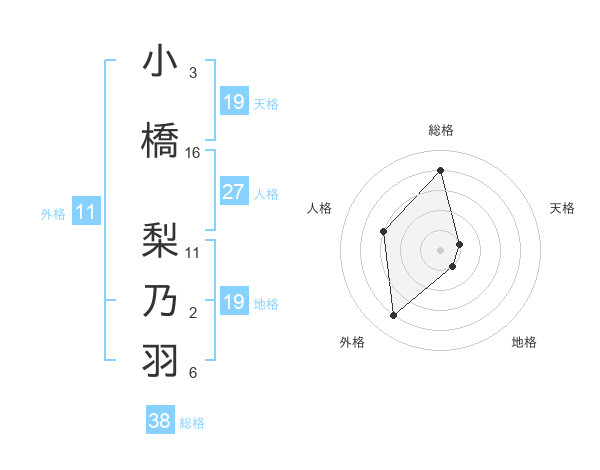 小橋 梨乃羽さんの総格は38画の4点!