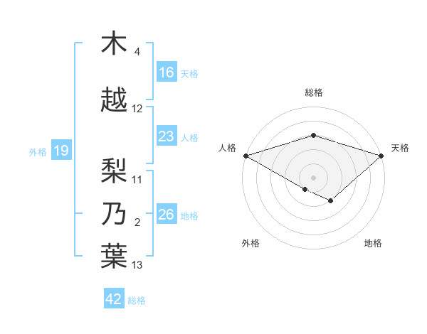 木越 梨乃葉さんを姓名の画数から五運を鑑定