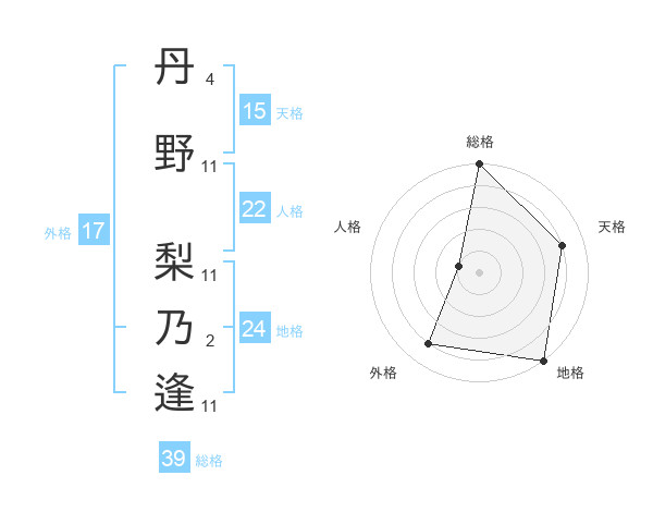 丹野 梨乃逢さんを姓名の画数から五運を鑑定