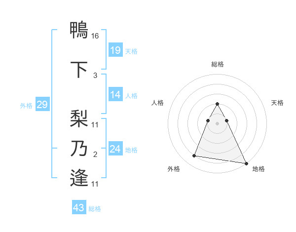 鴨下 梨乃逢さんを姓名の画数から五運を鑑定