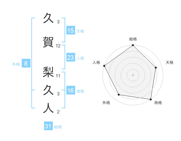 久賀 梨久人さんを姓名の画数から五運を鑑定
