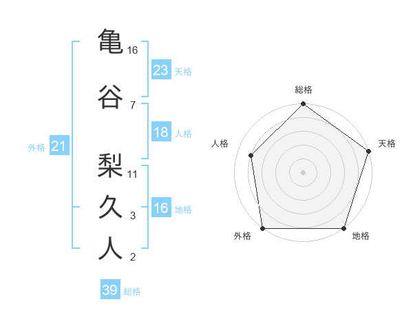亀谷 梨久人さんの総格は39画の5点!