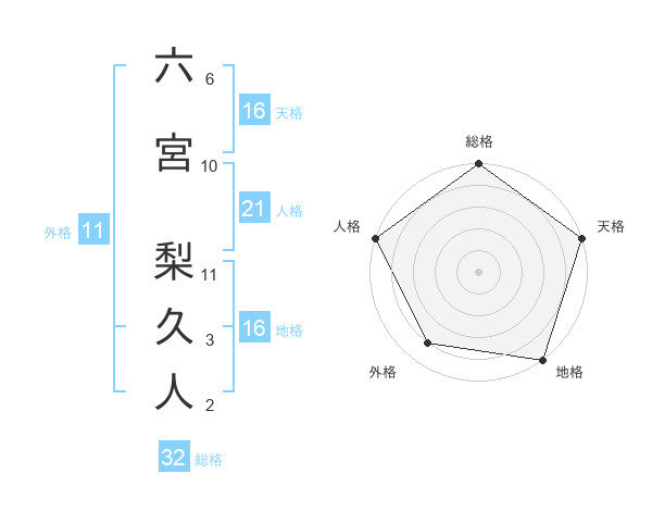 六宮 梨久人さんの総格は32画の5点!