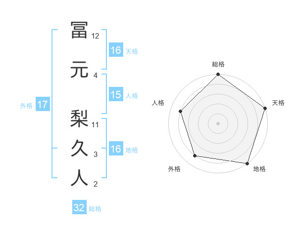 冨元 梨久人さんの天格は16画の5点!
