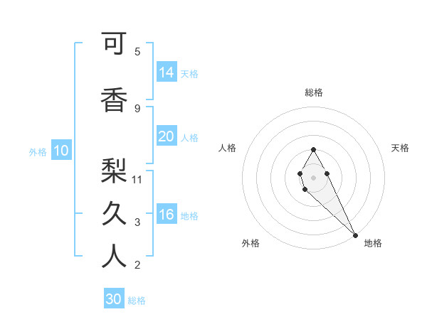 可香 梨久人さんを姓名の画数から五運を鑑定