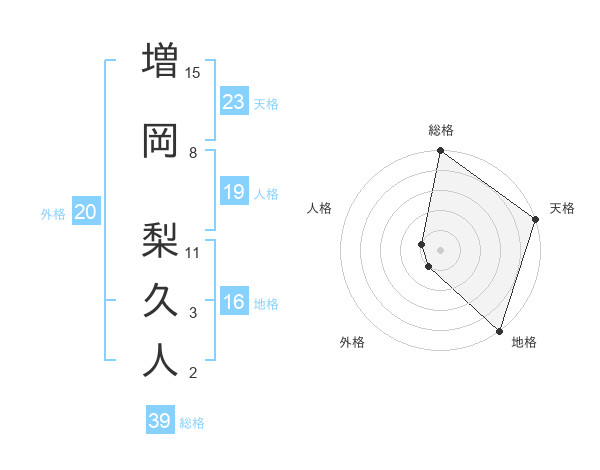増岡 梨久人さんの総格は39画の5点!